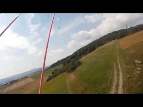 Ich habe das Gefühl, dass ich im Moment nur noch in Eschbach fliege. War heute von 12:00 bis 15:30 Uhr wieder da. Der Wind war recht schwach angekündigt und dementsprechend (!) hat es teils heftig gekachelt. Dazu ziemlich thermische Bedingungen. Einge Flieger sind auf Strecke gegangen, aber 3 Flieger sind auch in die Büsche gefallen (vielleicht noch mehr, nur die habe ich mitbekommen). Einmal sogar ziemlich heftig und es hat fast ne Stunde gedauert, bis Flieger und Schirm wieder frei waren. Es hat durch etwas viel Südeinschlag nur unzuverlässig auf der Westseite der Kante getragen. Ich habe mich deshalb weitgehend auf der Osthälfte vom Hang verlustiert. Da geht es nicht so hoch, aber man fällt auch nicht in die Büsche, wenn es nicht trägt. Außerdem ist es da immer leerer, denn auf der anderen Seite haben sich die Schirme teils wieder dicht gedrängt. Aber da mehrere Flieger wie gesagt aufdrehen und auf Strecke gehen konnten und andere nach Brehm ausgewichen sind, da die Bedingungen angeblich zu schlecht für Eschbar wären ;-), war es weitgehend ok mit der Schirmanzahl an der Kante.